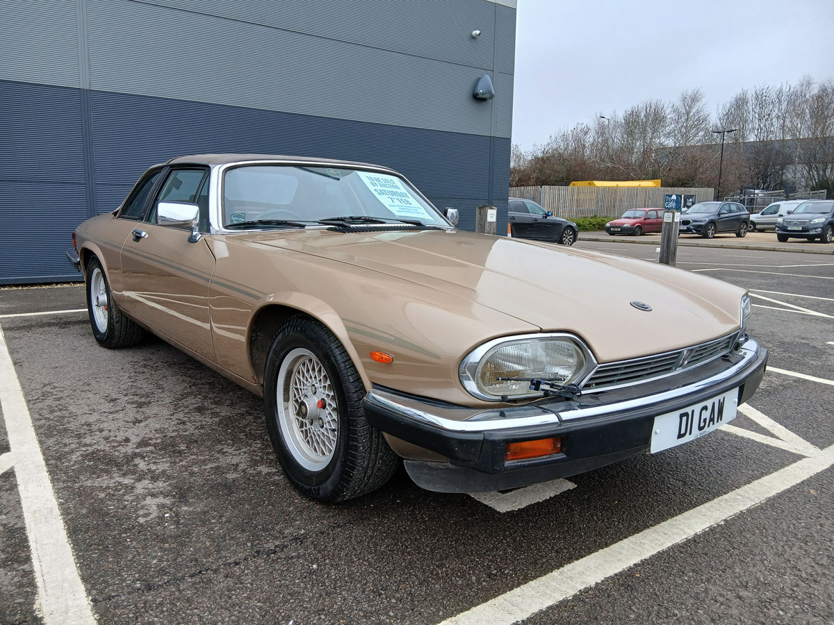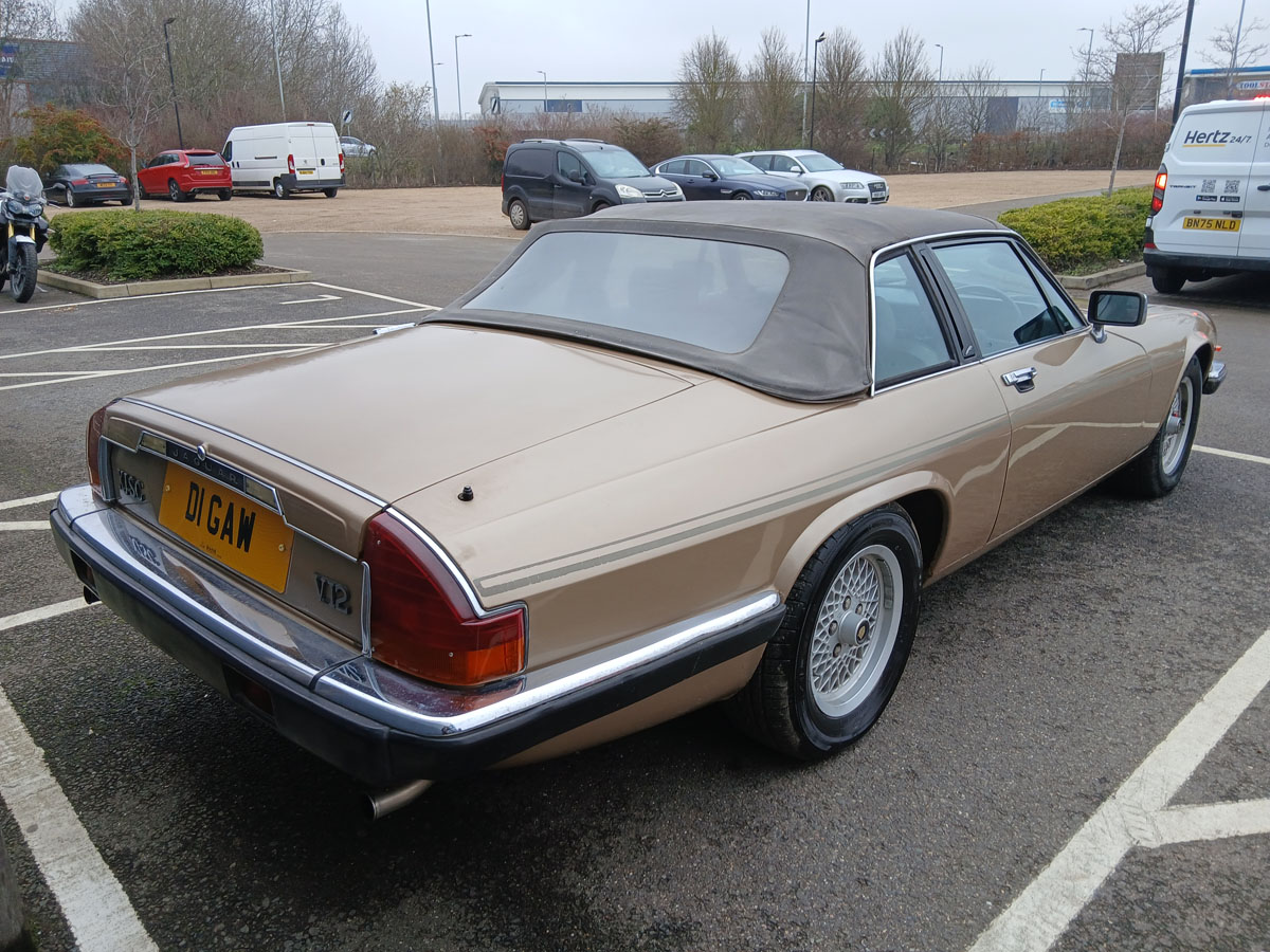 Jaguar XJSC V12 HE in sand gold with targa-style removable roof, sold with private registration plate DI GAW, first registered 01/08/1986, 5343cc petrol, 2/3 speed automatic, mileage showing 91,087, six former keepers, MOT until 20/03/2026, two keys, current V5 and handbook, HPi checked.